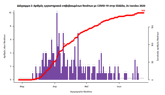 Τέλος, δεν έχει καταγραφεί κανένας νέος θάνατος ενώ έχουμε 190 θανάτους συνολικά στη χώρα. 60 (31.6%) γυναίκες και οι υπόλοιποι άνδρες.