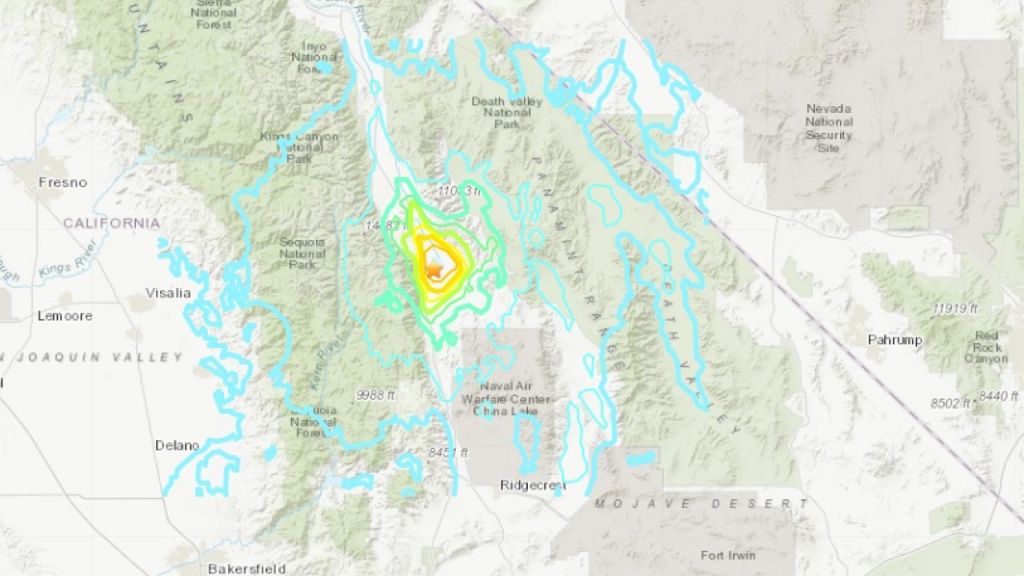 Η δόνηση είχε εστιακό βάθος 44 χλμ και επίκεντρο που εντοπίζεται στα 247 χλμ βόρεια του Λος Άντζελες.