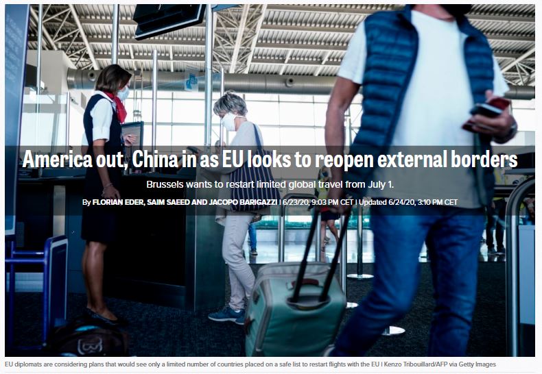Ως έχει έως σήμερα η κατάσταση, το κριτήριο ισοδυναμεί με την εξαίρεση από τη λίστα αρκετών χωρών, περιλαμβανομένων των ΗΠΑ, της Βραζιλίας και της Βόρειας Μακεδονίας, ενώ τα ταξίδια προς και από την Κίνα θα επιτρέπονται.