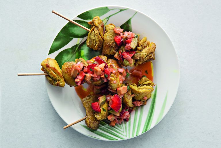 Καλαμάκια κοτόπουλου με σάλτσα φράουλας