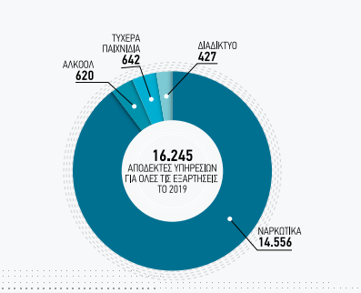 Οι λεγόμενες «νόμιμες εξαρτήσεις», από το αλκοόλ, τα τυχερά παιχνίδια, το διαδίκτυο και τις εφαρμογές του, για τις οποίες το ΚΕΘΕΑ προσέφερε 1.689 θέσεις θεραπείας το 2019, προσδίδουν στο πρόβλημα της εξάρτησης νέες όψεις, διευρύνοντας τον αριθμό, τα χαρακτηριστικά και τις ανάγκες όσων έχουν ανάγκη από βοήθεια.