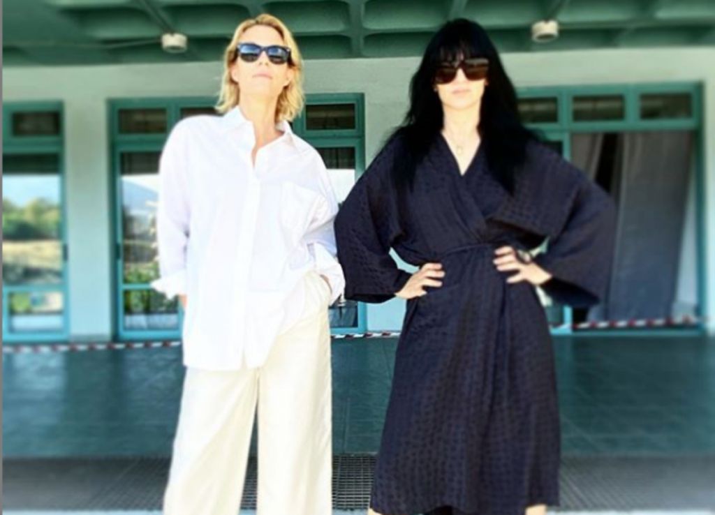 «Και οι δυο τρελά χαρούμενες, πρωινές φατσούλες με τυφώνες για μαλλιά. Kαλημέρα είπαμεεεεε;;» σχολίασε με το γνωστό της ύφος η Ζενεβιέβ Μαζαρί στην ανάρτησή της που κοινοποίησε και η Βίκυ Καγιά.