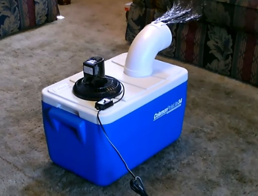 Βάλτε μέσα στο ψυγειάκι ένα μεγάλο κομμάτι πάγου, ή πάρα πολλά παγάκια. Κλείστε το με το καπάκι, και βάλτε σε λειτουργία τον ανεμιστήρα.