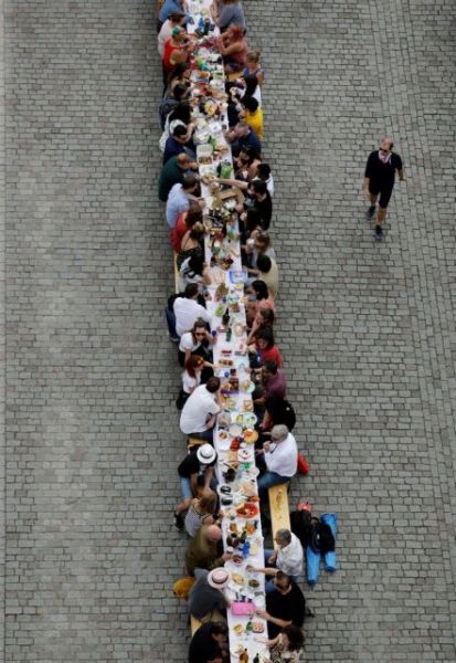 Συνεισφέροντας φαγητό ή ποτό οι συμμετέχοντες σε αυτό το δείπνο μοιράστηκαν το γεύμα τους πάνω στη γέφυρα αυτή του 14ου αιώνα, σύμβολο της πρωτεύουσας της Τσεχίας, την ώρα που μια αυτοσχέδια ορχήστρα έπαιζε μουσική και πολλοί τραγουδούσαν γύρω από ένα τραπέζι στολισμένο με μαργαρίτες.