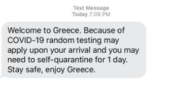 Μας πληροφορούν ότι άνθρωποι που ήρθαν από την Αμερική έλαβαν ένα SMS που τους έλεγε ότι όσοι έρχονται στην Ελλάδα θα είναι σε καραντίνα μόνο 24 ώρες. Και στην αρχή μιλούσαμε για 14 ημέρες, μετά έγινε 7, τώρα μία, σε λίγο δεν θα κάνουν καν ελέγχους ούτε από χώρες όπως οι ΗΠΑ που πεθαίνουν σαν τις μύγες.