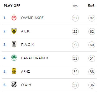 Η Ενωση κρατάει στα χέρια της τη δεύτερη θέση, που οδηγεί στα προκριματικά του Champions League. Από εκεί και πέρα, ο Αρης έμεινε στους 38 πόντους και στην 5η θέση, ενώ στην 6η θέση είναι ο ΟΦΗ με 36 πόντους.