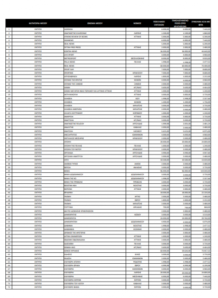 Στη δημοσιότητα έδωσε η κυβέρνηση τη λίστα με τα ΜΜΕ και τα ποσά που δόθηκαν στην καμπάνια ύψους 20 εκατομμυρίων ευρώ για τον κοροναϊό.