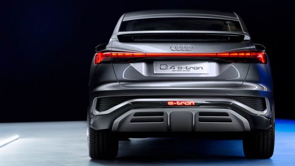 Υπό το σκεπτικό της νέας οροφής, το πίσω παρμπρίζ είναι επίσης πιο έντονα κεκλιμένο, ενώ διαιρείται από την παρουσία ενός spoiler που αφήνει από κάτω του, «εκτεθειμμένο» ένα μικρό μέρος της γυάλινης επιφάνειας. Χαμηλότερα ο αεροδυναμικός διαχύτης ακολουθεί την ίδια λογική με το Q4 e-tron ενώ το ίδιο ισχύει για τη σχεδίαση των πίσω φωτιστικών σωμάτων με την χαρακτηριστική γραμμή που διατρέχει το πορτ μπαγκάζ ενώνοντάς τα, τους χαρακτηριστικούς θόλους αλλά και την ευμεγέθη γρίλια μπροστά.