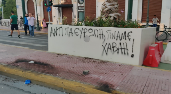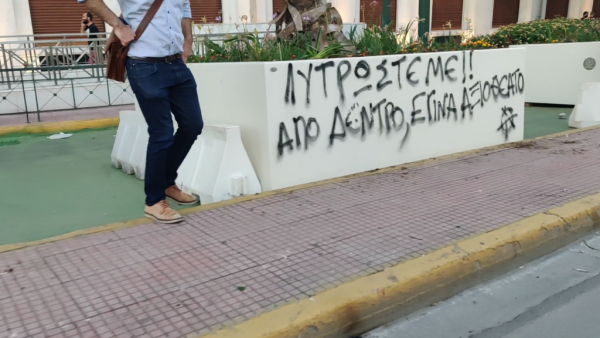 Συνθήματα πάνω στις ζαρντινιέρες έγραψαν ξανά άγνωστοι.