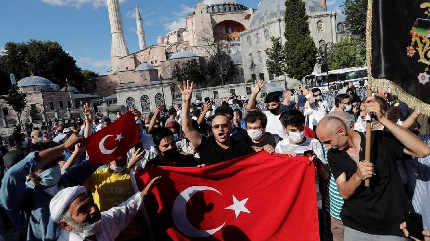 Υποστηρικτές του Ερντογάν πανηγυρίζουν για τη μετατροπή της Αγίας Σοφίας σε τζαμί (Φωτογραφία sozcu.com.tr)