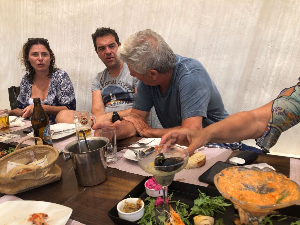 Μετά την εξαιρετικά επιτυχημένη περιοδεία στη Νάξο, ο πρώην πρωθυπουργός και πρόεδρος του ΣΥΡΙΖΑ έκλεψε λίγες ώρες μαζί με την οικογένειά του, και με τη «λάντζα», το καΐκι της γραμμής του συντρόφου Γ. Μαύρου, από τον Βόλακα της Νάξου στην όμορφη παραλία με τα υπέροχα γαλαζοπράσινα φωτεινά νερά, στο Πορί του Κουφονησίου. Μαζί με τους Κουφονησιώτες Θανάση και Αντρέα Τσάδαρη, Κωστή Παπαδόπουλο και Ηλία Φωστιέρη, συνοδεία τσίπουρου, χαλαρές-χαρούμενες συζητήσεις.