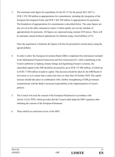 Ερωτηματικά προκαλεί διάταξη του Σχεδίου Συμπερασμάτων λίγα 24ωρα πριν τη έναρξη της κρίσιμης Συνόδου Κορυφής κατά την οποία γίνεται αναφορά στο νέο Πολυετές Δημοσιονομικό Πλαίσιο (ΠΔΠ) για το 2021-2027 και είναι σε αντίθεση με την πρόταση της Κομισιόν.