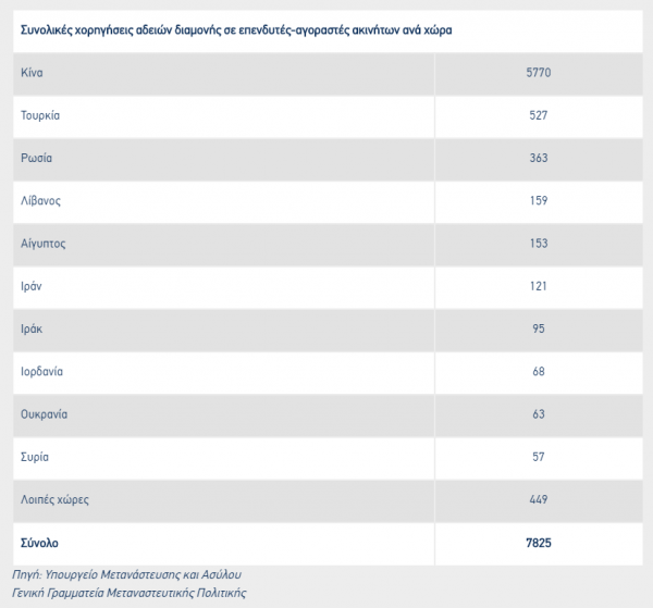 Ακόμα κι έτσι βέβαια παραμένουν οι βασικοί αποδέκτες των αδειών που εκδίδονται. Από το σύνολο των 7.825 αδειών που έχουν χορηγηθεί από την αρχή του προγράμματος μέχρι σήμερα, οι 5.770, δηλαδή σχεδόν το 74%, αφορούν Κινέζους.