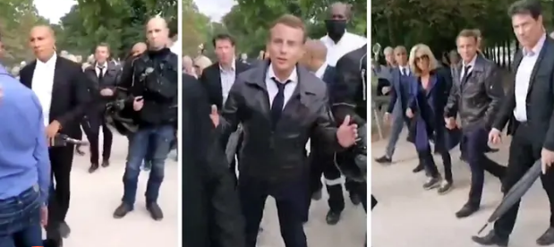 Την ώρα, λοιπόν, που ο Γάλλος πρόεδρος έκανε αμέριμνος της βόλτα του στον Κήπο του Κεραμεικού μαζί με τη σύζυγό του Μπριζίτ, διαδηλωτές τον εντόπισαν και άρχισαν να τον γιουχάρουν.