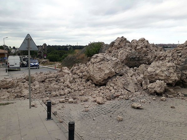 Κατέρρευσε τμήμα από τα ιστορικά τείχη του Θεοδοσίου στην Κωνσταντινούπολη το βράδυ της Τρίτης.