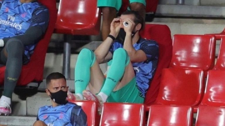 Ο Ουαλός εξόργισε τους φιλάθλους των Μαδριλένων, όταν έδειχνε έτοιμος να κοιμηθεί με μια προστατευτική μάσκα προσώπου στα μάτια του, ενώ παρακολουθούσε την αναμέτρηση.