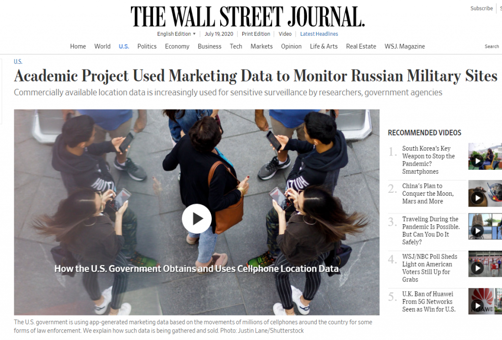 Αποκαλύψεις αναφορικά με κινήσεις ανώνυμων Ρώσων αξιωματούχων που -πιθανώς- σχετίζονται με την αμυντική βιομηχανία της χώρας, αγοράζοντας απλά εμπορικά δεδομένα που συλλέχθηκαν από τα κινητά τους τηλέφωνα, εντόπισαν ερευνητές από το Mississippi State University.