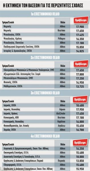 – Στο 4ο επιστημονικό πεδίο ωστόσο αναμένεται μια μικρή πτώση στις υψηλόβαθμες και αυξομειώσεις ή άνοδος σε τμήματα μεσαίας βαθμολογίας. Θα έχει ενδιαφέρον ωστόσο η κίνηση των κοινών σχολών μεταξύ 2ου και 4ου επιστημονικού πεδίου.