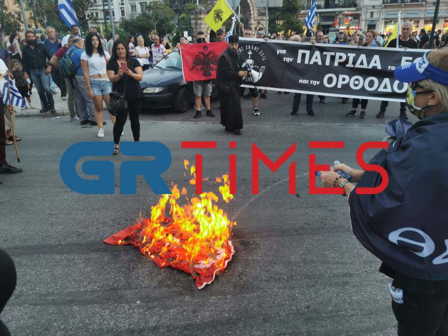 Μάλιστα, κάποιοι έκαψαν και της σημαία σε ένδειξη διαμαρτυρίας για την Αγία Σοφία.