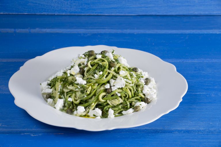 3-4 κολοκύθια (περίπου 1/2 κιλό), κομμένα σε σπαγγέτι με το ειδικό εργαλείο (το βρίσκουμε σε καταστήματα που πουλάνε εργαλεία για την κουζίνα).