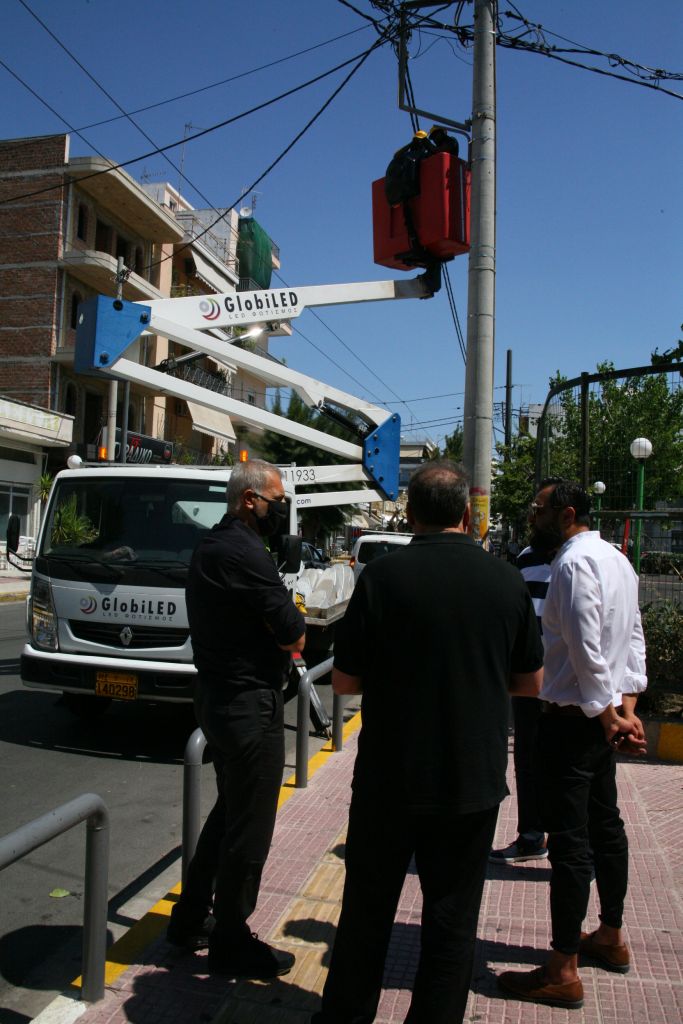 Ο Δήμαρχος Πειραιά κ. Γιάννης Μώραλης και ο Εντεταλμένος Δημοτικός Σύμβουλος Μηχανολογικού-Ηλεκτρολογικού κ. Λεωνίδας Μανωλάκος επισκέφθηκαν σήμερα την περιοχή των Καμινίων, όπου βρίσκονται σε εξέλιξη οι εργασίες αντικατάστασης των φωτιστικών σωμάτων.