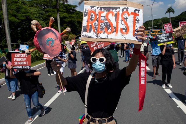 Όμως τη στιγμή που εκατομμύρια Φιλιππινέζων επιστρέφουν σε lockdown, επικριτές του προέδρου τον κατηγορούν ότι η νέα αντιτρομοκρατική νομοθεσία θα μπορούσε να χρησιμοποιηθεί για να φιμώσει ακόμη περισσότερο τους διαφωνούντες – ιδιαιτέρως σε ό,τι αφορά τον ίδιο τον ιό.