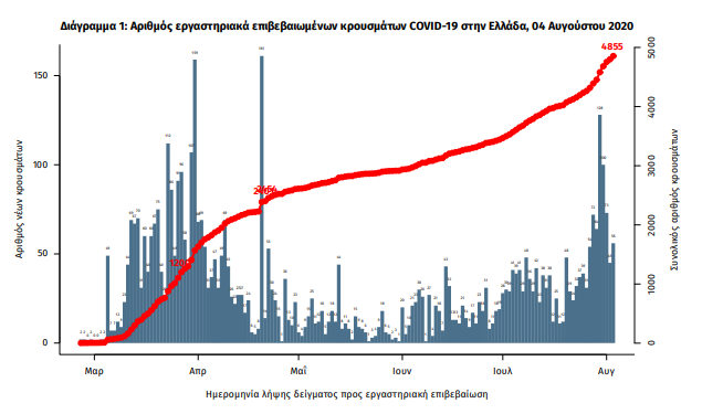 Ο συνολικός αριθμός των κρουσμάτων είναι 4855, εκ των οποίων το 54.6% αφορά άνδρες.