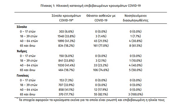 Η διάμεση ηλικία των θανόντων συμπολιτών μας ήταν τα 76 έτη και το 95.7% είχε κάποιο υποκείμενο νόσημα ή/και ηλικία 70 ετών και άνω.