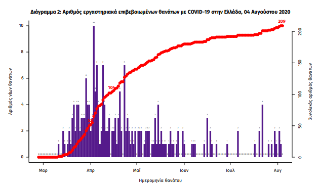 Τέλος, δεν έχει καταγραφεί κανένας νέος θάνατος ενώ έχουμε 209 θανάτους συνολικά στη χώρα. 67 (32.1%) γυναίκες και οι υπόλοιποι άνδρες.