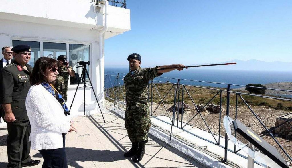 Οι εντάσεις αυξήθηκαν όταν η πρόεδρος της Ελλάδας, Κατερίνα Σακελλαροπούλου, επισκέφθηκε το Αγαθονήσι, σημειώνει ακόμη ο αρθρογράφος της τουρκικής εφημερίδας, η οποία παρουσιάζει και φωτογραφία από την επίσκεψη (πάνω).