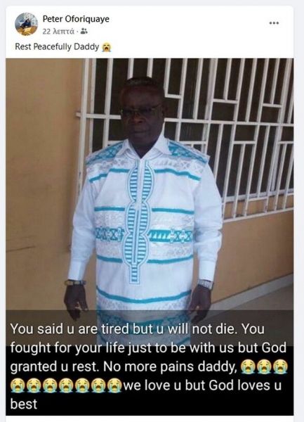 Ο παλαίμαχος επιθετικός του Ολυμπιακού, Πίτερ Οφορίκουε, έχασε τον πατέρα του και τον αποχαιρέτησε με μία άκρως συγκινητική ανάρτηση στα social media.
