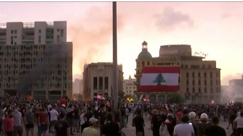Στη Βηρυτό, χθες το βράδυ Σαββάτου, η πλατεία Μαρτύρων, δίπλα στη Βουλή, μετατράπηκε σε πεδίο μάχης.