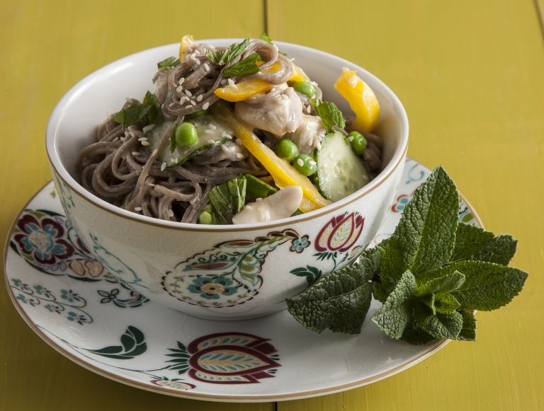 Νουντλς με κοτόπουλο και σάλτσα από ταχίνι