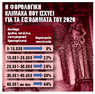 Σήμερα ο ανώτατος συντελεστής φορολογίας εισοδήματος ανέρχεται στο 44% για εισοδήματα άνω των 40.000 ευρώ, ο αμέσως μικρότερος είναι 36% για εισοδήματα μεταξύ 30.000 ευρώ και 40.000 ευρώ και ο επόμενος είναι 28% για εισοδήματα από 20.000 ευρώ έως 30.000 ευρώ. Μάλιστα, αν στους συντελεστές αυτούς προστεθεί και η εισφορά αλληλεγγύης, τότε για ένα μεγάλο μέρος των μεσαίων εισοδημάτων ο πραγματικός φορολογικός συντελεστής αγγίζει ή και υπερβαίνει το 40%.