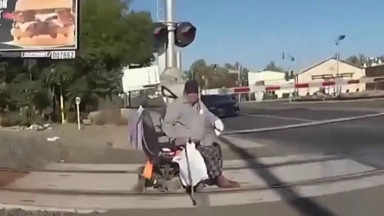 Το περιστατικό συνέβη το πρωί της Τετάρτης όταν ο άνδρας στο αναπηρικό καροτσάκι κόλλησε στις γραμμές του τρένου.