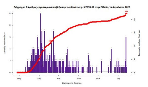 Οι νέοι θάνατοι ασθενών με COVID-19 είναι 2, ενώ από την έναρξη της επιδημίας έχουν καταγραφεί συνολικά 223 θάνατοι. Η μέση ηλικία των ασθενών που απεβίωσαν είναι 77 έτη. Ο αριθμός των ασθενών που νοσηλεύονται διασωληνωμένοι είναι 22 (68.2% άνδρες).