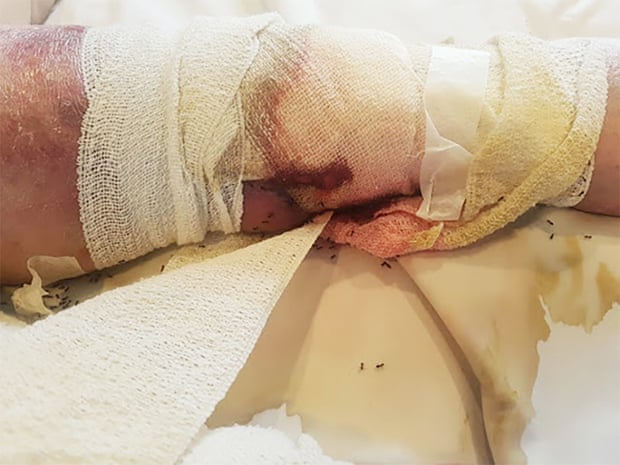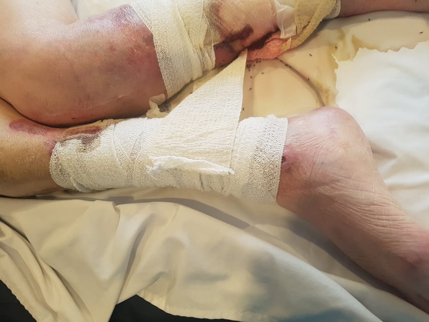 Σοκαριστικές εικόνες από μία ηλικιωμένη που αφέθηκε να υποφέρει σε οίκο ευγηρίας της Μελβούρνης που χτυπήθηκε από τον κοροναϊό, δείχνουν μυρμήγκια να περπατούν σε πληγή στο πόδι της, και τους επιδέσμους της να έχουν δημιουργήσει κρούστα από αίμα.