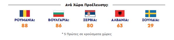 Ειδικότερα, από τα 615 εισερχόμενα κρούσματα, 88 προέρχονται από τη Ρουμανία, 86 από τη Βουλγαρία, 80 από τη Σερβία, 63 από την Αλβανία, ενώ άλλα 29 προέρχονται από τη Σουηδία.