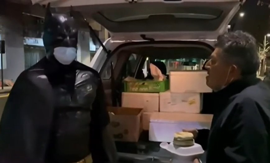 O Μπάτμαν γυρίζει τους δρόμους και μοιράζει φαγητό στους άστεγους στην πρωτεύουσα της Χιλής
