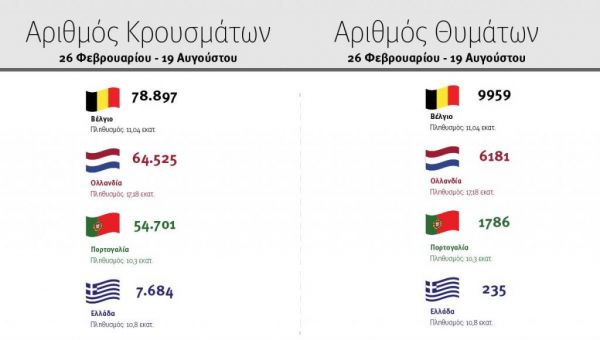 Προκύπτει έτσι ότι σε παγκόσμιο επίπεδο, ο μέσος όρος κρουσμάτων είναι 2.831 ανά ένα εκατομμύριο κατοίκους. Αντίστοιχα, στην Ελλάδα ανέρχονται σε 693 ανά ένα εκατομμύριο κατοίκους.
