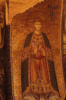 Επάνω από την μεγάλη θύρα από την οποία εισερχόταν εκ του εσωνάρθηκα στο ναό, βρίσκεται η εικόνα του Θεοδώρου του Μετοχίτη, στο ψηφιδωτό που δείχνει τον Μετοχίτη να προσφέρει στον ένθρονο Σωτήρα Χριστό ομοίωμα του ναού. Ο ναός είχε δύο νάρθηκες τους οποίους κοσμούσαν μωσαϊκά και τοιχογραφίες του Θεόδωρου Μετοχίτη.