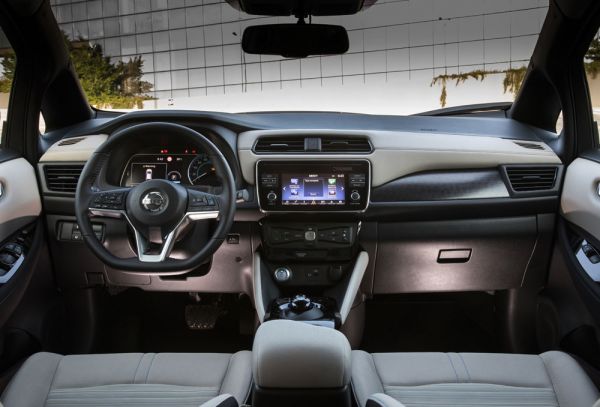 Ο οικογενειακός προσανατολισμός του μοντέλου είναι σαφής παντού, κυρίως δε στα 435 λίτρα του χώρου αποσκευών, μέγεθος εξαιρετικό για ηλεκτροκίνητο μοντέλο. Αισθητικά, τα υλικά που έχουν επιλεγεί, οι διακόπτες, τα όργανα και τα γραφικά αποπνέουν την εκλεπτυσμένη αντίληψη της Nissan. Πέρα από την πρωτότυπη σχεδίαση του επιλογέα του αυτόματου κιβωτίου ταχυτήτων, οι μπλέ ραφές στα καθίσματα, στο ταμπλό και στο τιμόνι αλλά και η οθόνη TFT των οκτώ ιντσών με τις ψηφιακές απεικονίσεις διαχείρισης της ενέργειας και των λειτουργιών συνδεσιμότητας (με Apple CarPlay και Android Auto) που ενσωματώνονται στο σύστημα infotainment μαγνητίζουν τα βλέμματα και κερδίζουν τις εντυπώσεις. Θα ήταν άλλωστε εντελώς ανακόλουθο αν το Leaf δεν διέθετε ένα από τα πιο προηγμένα συστήματα πλήρους παρακολούθησης των παραμέτρων της ηλεκτρικής λειτουργίας του σε πραγματικό χρόνο. Συνολικά η Nissan έχει προικίσει το συγκεκριμένο αυτοκίνητο με όλα τα στοιχεία άνεσης, ασφάλειας και αποτροπής ατυχημάτων που υπάρχουν στο τεχνολογικό της οπλοστάσιο, αναβαθμίζοντας την εικόνα του από μέσο καθημερινών μετακινήσεων σε τετράτροχο gadget.