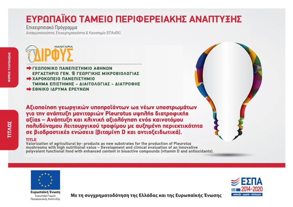 Παρά τις μεγάλες απώλειες στη μονάδα παραγωγής υποστρώματος από τις πρόσφατες καταστροφικές πλημμύρες του Αυγούστου η εταιρεία Δίρφυς Μανιτάρια βρίσκεται με συνέπεια στη πρώτη γραμμή της έρευνας για καινοτόμα πολυδύναμα λειτουργικά τρόφιμα υψηλής διατροφικής αξίας που αποτελούν και το μέλλον της ελληνικής αγροδιατροφής.