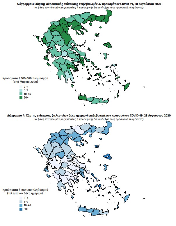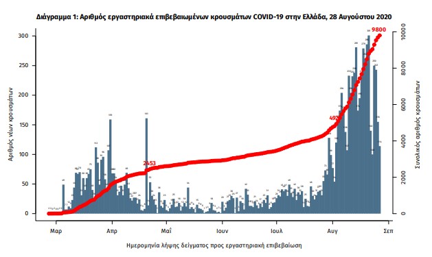 Έτσι, ο συνολικός αριθμός των κρουσμάτων είναι 9.800, εκ των οποίων το 55.6% άνδρες, ενώ 2.012 (20.5%) θεωρούνται σχετιζόμενα με ταξίδι από το εξωτερικό και 4.347 (44.4%) είναι σχετιζόμενα με ήδη γνωστό κρούσμα.