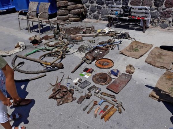 Οι δύτες ανέσυραν 827 κιλά απορριμμάτων από το βυθό στη Σαντορίνη. Πολλά αντικείμενα, ήταν σωλήνες, εργαλεία, λάστιχα αυτοκινήτων ακόμα και καρέκλες