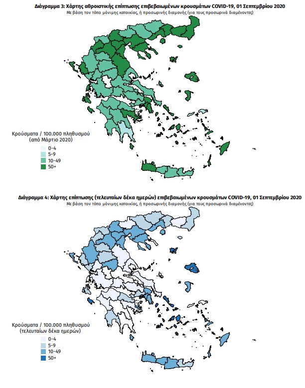 Ο χάρτης αποτυπώνει τη γεωγραφική κατανομή των συνολικών κρουσμάτων COVID-19 (από την αρχή της επιδημίας) ανά Περιφερειακή Ενότητα της χώρας, με βάση την δηλωθείσα διεύθυνση μόνιμης κατοικίας του ασθενούς, ή τη διεύθυνση προσωρινής διαμονής για τους τουρίστες και άλλους προσωρινά διαμένοντες στην Ελλάδα. Συμπεριλαμβάνονται τόσο κρούσματα με ιστορικό ταξιδίου (“εισαγόμενα”) όσο και κρούσματα με πιθανή εγχώρια μετάδοση.