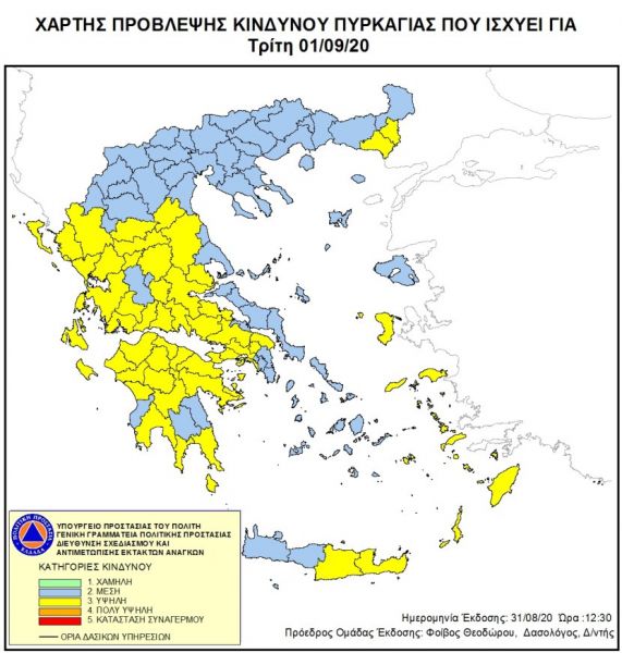 Ειδικότερα σύμφωνα με τον χάρτη πρόβλεψης κινδύνου πυρκαγιάς που εκδίδει η Γενική Γραμματεία Πολιτικής Προστασίας στην κατηγορία κινδύνου 3 είναι οι εξής περιοχές: