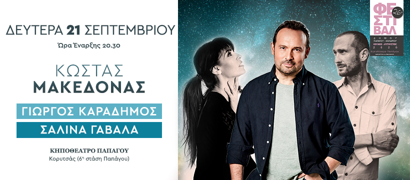 Ο Κώστας Μακεδόνας συναντά τη Σαλίνα Γαβαλά και τον Γιώργο Καραδήμο σε ένα live γεμάτο αγαπημένες μελωδίες , στο πανέμορφο κηποθέατρο Παπάγου.