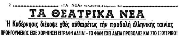 «ΤΑ ΝΕΑ», 4.8.1961, Ιστορικό Αρχείο «ΤΟ ΒΗΜΑ» & «ΤΑ ΝΕΑ»