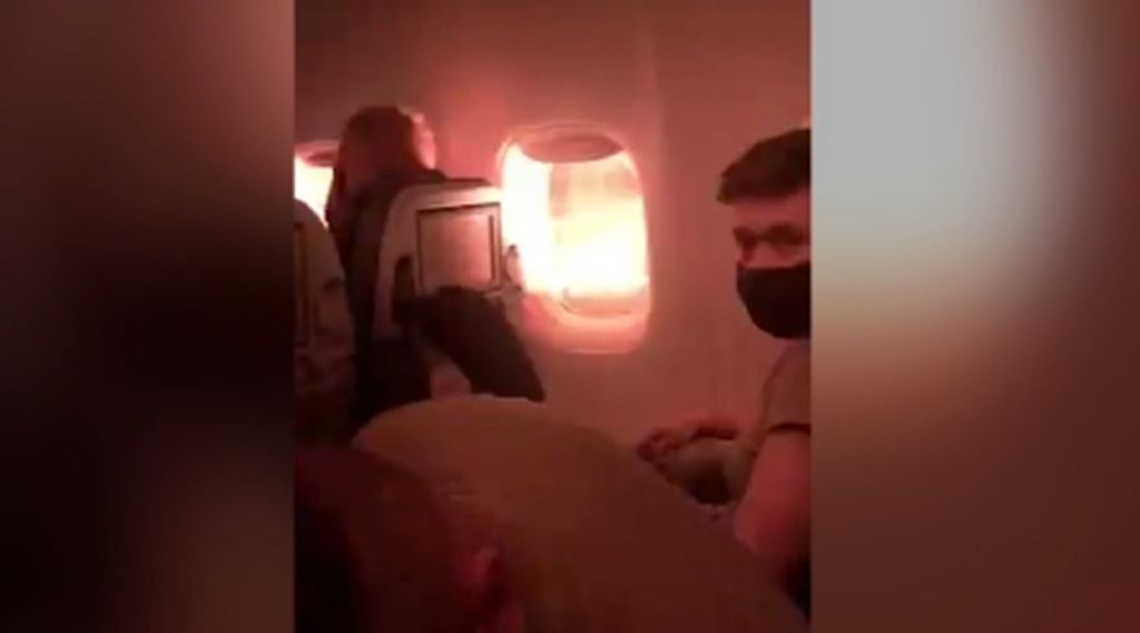 Οπως φαίνεται από το βίντεο, οι φλόγες ήταν έντονες και φαίνονταν σαν αστραπές. Ωστόσο οι επιβάτες της πτήσεις δείχνουν να μην πανικοβάλλονται.